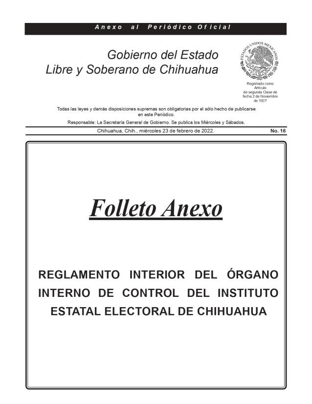 Acuerdo AC-OIC-IEE-001/2023 por el que el órgano interno de control del instituto estatal electoral de chihuahua modifica las disposiciones por las que se dan a conocer los días inhábiles, de suspensión de labores, y de medios de recepción de promociones de término, quejas y denuncias ante el órgano interno de control del instituto estatal electoral de chihuahua, y el acuerdo AC-OIC-IEE-001/2022 por el que se modifica el horario del órgano interno de control del instituto estatal electoral de chihuahua y se adhiere a los días y periodos vacacionales del instituto estatal electoral de chihuahua para 2022, durante los cuales se suspenderán los términos procesales que transcurran ante el citado órgano fiscalizador.
