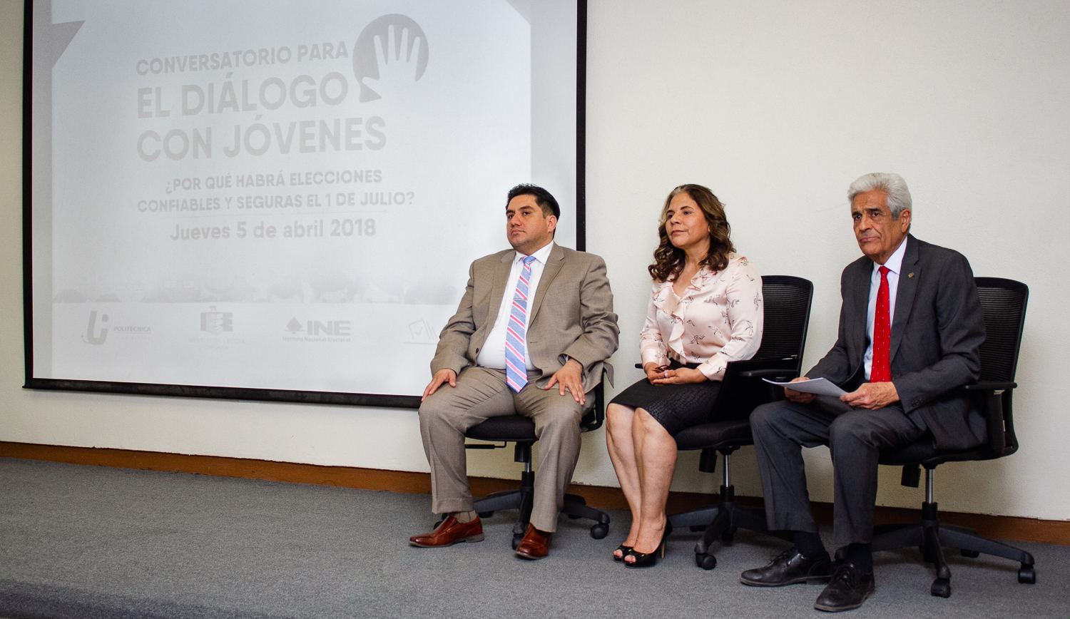 Chihuahua, Chih. - Como parte de las actividades que realizan el Instituto Estatal Electoral de Chihuahua (IEE) y el Instituto Nacional Electoral (INE) para la promoción de la participación ciudadana en el Proceso Electoral 2017-2018, se llevó a cabo el primer Conversatorio para Diálogo con Jóvenes, titulado ¿Por qué habrá elecciones confiables y seguras el 1 de julio?, evento que congregó a más de 100 alumnos de la Universidad Politécnica de Chihuahua.