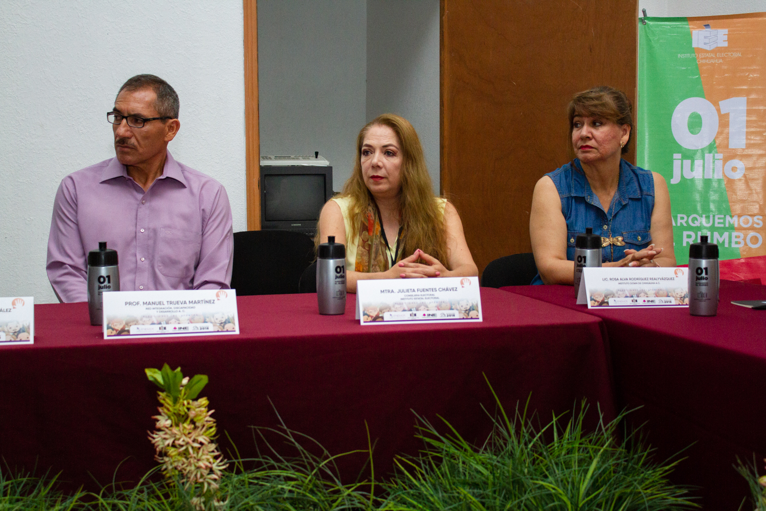Por parte del IEE, estuvieron presentes la Consejera Electoral Julieta Fuentes Chávez, los Consejeros Electorales Gilberto Sánchez Esparza y Saúl Rodríguez Camacho, así como el anfitrión, Pedro Uranga Rohana, director ejecutivo de Educación Cívica y Participación Ciudadana.
