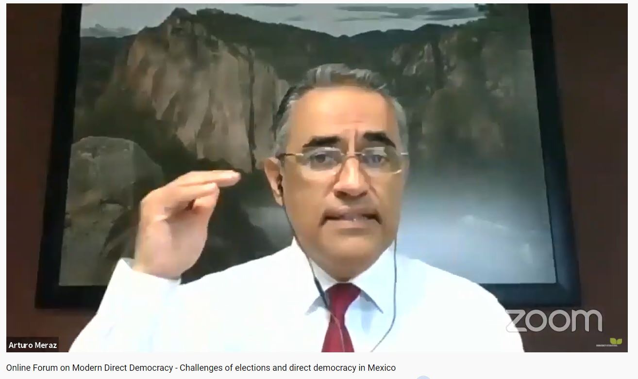 El consejero presidente del Instituto Estatal Electoral de Chihuahua (IEE), Arturo Meraz González, fue invitado a este foro internacional para exponer sobre “Nuevas circunstancias y desafíos en la realización de plebiscitos en el estado de Chihuahua, México”.